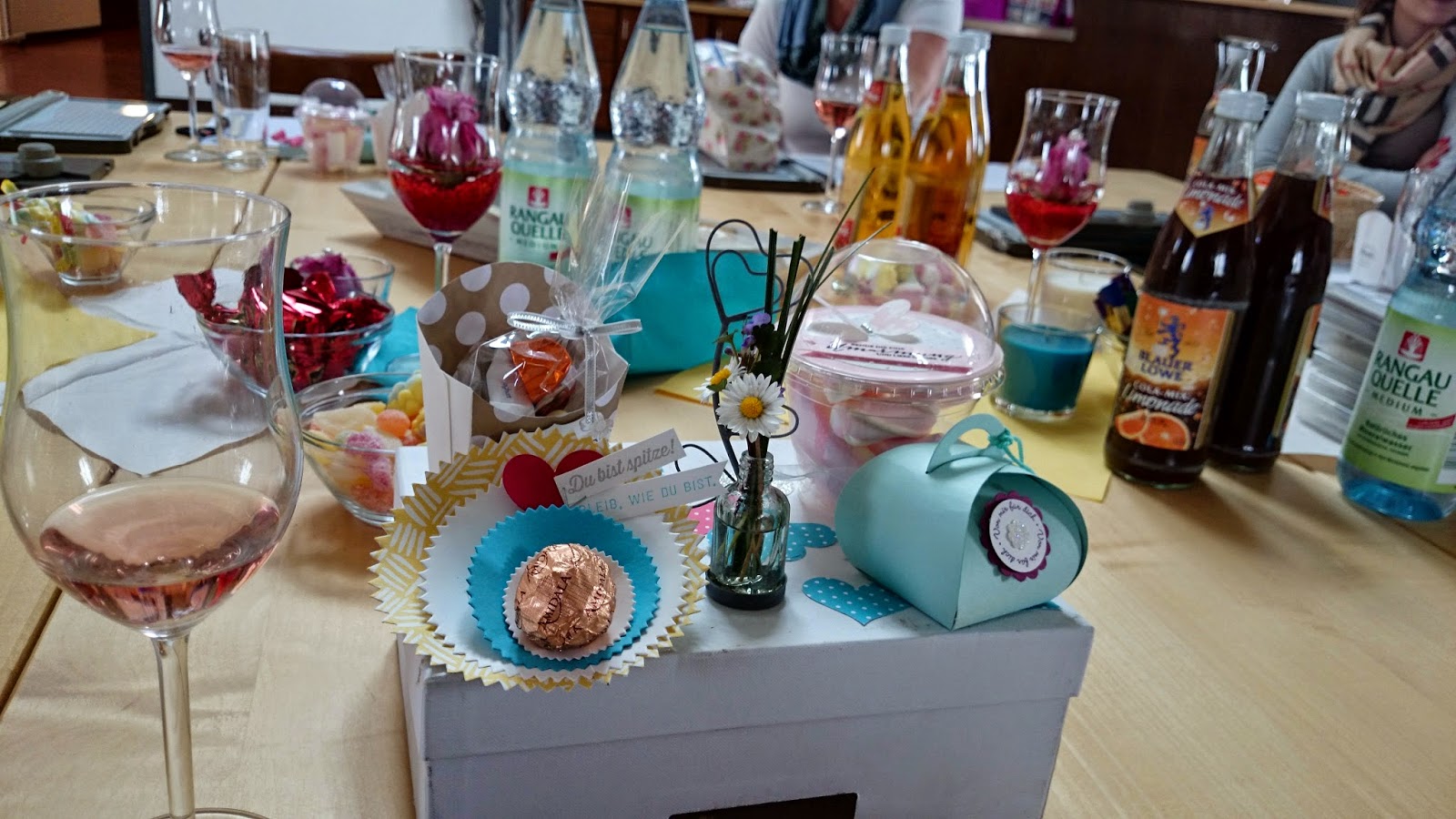 hat Andrea liebevoll dekoriert. Die kleine Vase ganz schnukelig. Ideal für die Gänseblümchen von meinem Sohn. Jetzt ein paar Stunden viel Spaß haben, miteinander kreativ sein und na klar Mundgymnastik :-).